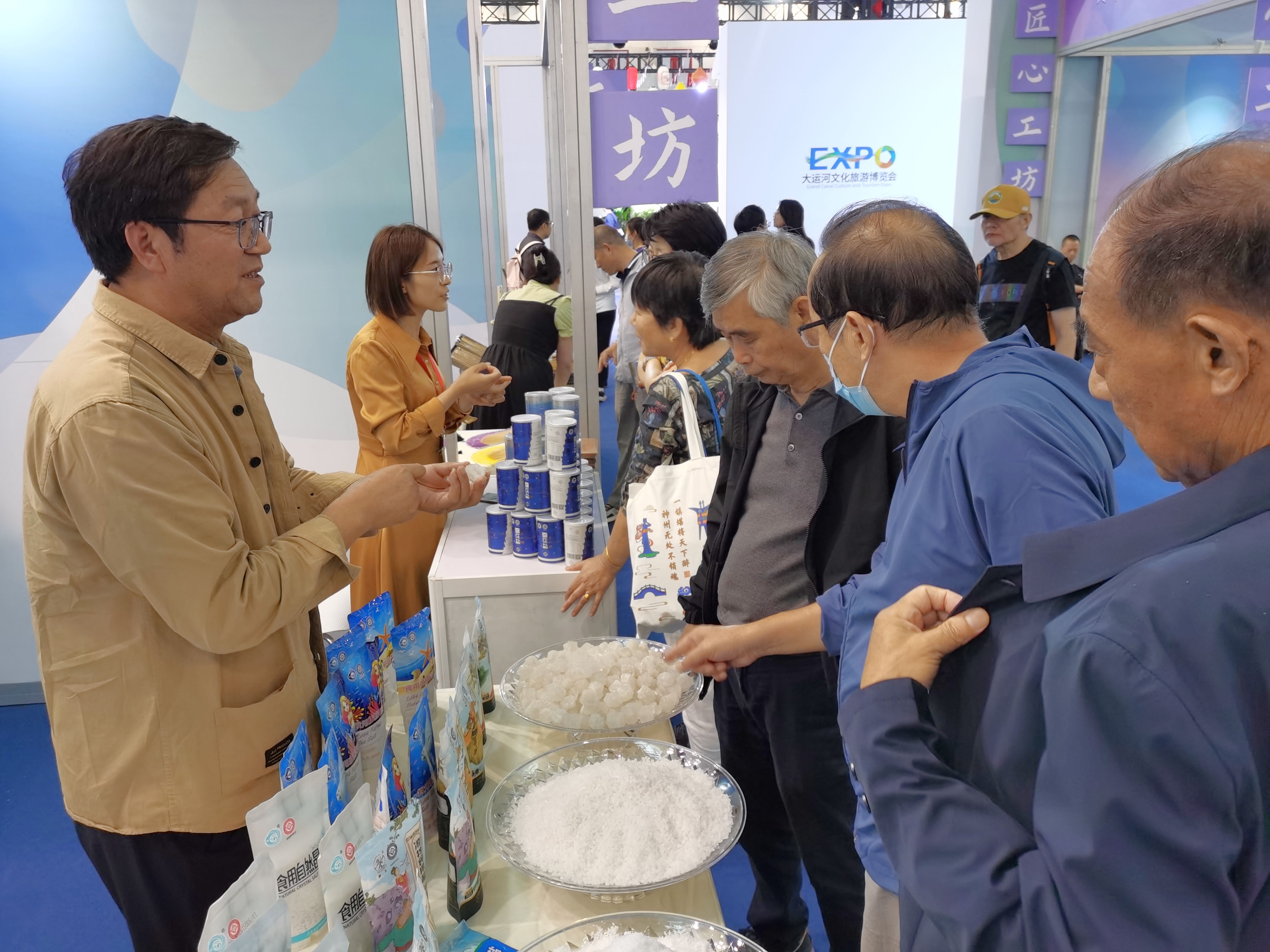 9月21日至24日,江蘇省委宣傳部和江蘇省文化和旅游廳等共同主辦的第五屆大運(yùn)河文化旅游博覽會在蘇州工業(yè)園區(qū)舉辦,集團(tuán)公司的國家級非遺項目“淮鹽制作技藝”受邀參展。這次共展示了加碘精制鹽、顆粒鹽、雪花鹽、低鈉鹽等“古淮”“猴王”品牌的20余個食鹽品種。