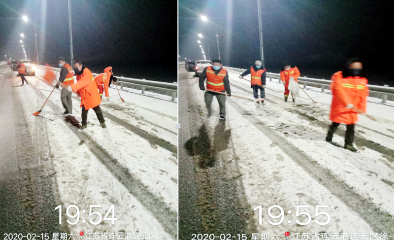 2月15日晚18:00時,徐圩悅升公司班子成員及各分公司黨政負(fù)責(zé)人全員出動,帶領(lǐng)18名突擊隊員快速趕赴新區(qū)上海路、徐圩大道、徐新路、金港路等主要交通要道,連續(xù)奮戰(zhàn)4個多小時,對橋梁、彎道等重點(diǎn)防滑路段進(jìn)行清雪防凍處理,共鋪灑融雪劑10余噸?!跋愫忧榫?、幸福家園”兩個職工小區(qū)防控疫情值守人員,不懼嚴(yán)寒,冒著大雪,在小區(qū)加強(qiáng)巡邏防控。該公司應(yīng)急大隊按照徐圩新區(qū)防疫指揮部要求,配合社區(qū)對珠江鋼管相關(guān)路道進(jìn)行封閉管控。