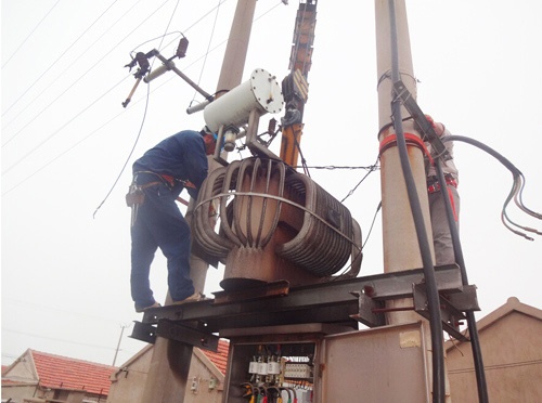 連日來,天氣持續(xù)高溫,用電負荷也隨之加大,轄區(qū)原有設(shè)計的供電線路及變壓器容量已不能滿足居民生活用電的需求,供用電矛盾日益突出。特別是4號變壓器供電區(qū)域大、容量小,已嚴重危急到供電質(zhì)量和供電安全運行。為此,所領(lǐng)導(dǎo)決定將原有的160KVA變壓器更換為250KVA變壓器。為了避開高溫時斷,大家起早作業(yè),但還是忙的汗流浹背。他們顧不上休息,加快設(shè)備更換速度,終于在上午八點前完成更換任務(wù),恢復(fù)供電。(王志勇)