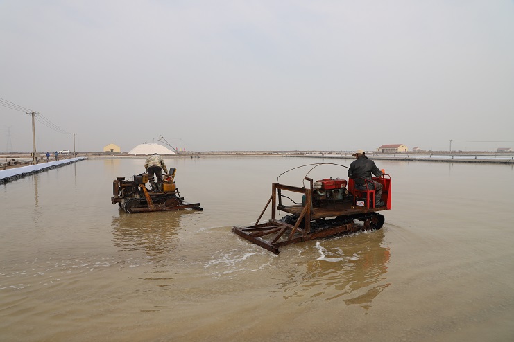 2月27日,我們?cè)谌諘裰汽}公司生產(chǎn)一線看到,一大清早,工人們就開始在鹽灘上忙碌著,為因氣溫較低而暫時(shí)停止的扒鹽工作做好各項(xiàng)開機(jī)前的準(zhǔn)備工作,確保扒鹽、生產(chǎn)兩不誤。