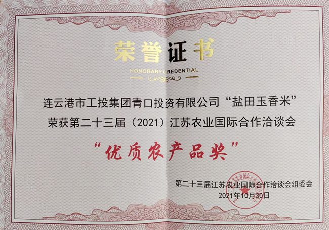 農(nóng)洽會(huì)上,“鹽田玉”大米憑借口感軟糯、營養(yǎng)豐富的口碑優(yōu)勢,再次得到大會(huì)和參展商的好評(píng),并在眾多農(nóng)產(chǎn)品中脫穎而出,榮獲第二十三屆江蘇農(nóng)業(yè)國際合作洽談會(huì)“優(yōu)質(zhì)農(nóng)產(chǎn)品獎(jiǎng)”。