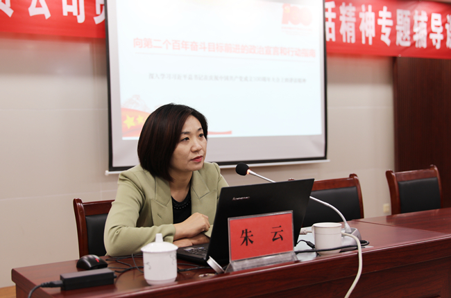 為了深入學(xué)習(xí)貫徹習(xí)近平總書記在慶祝建黨100周年大會上的重要講話精神,進一步教育引導(dǎo)全體黨員干部學(xué)黨史、悟思想、辦實事、開新局,不斷從黨史中領(lǐng)悟前進的智慧和力量。10月21日下午,青口公司舉辦貫徹建黨100周年講話精神專題輔導(dǎo)課,邀請市委黨校法政教研室主任,黨史學(xué)習(xí)教育市委宣講團成員朱云同志作專題輔導(dǎo)課。公司領(lǐng)導(dǎo)班子成員、各單位黨政工負(fù)責(zé)人、機關(guān)全體管理人員以及基層單位在職黨員參加。會議由黨委副書記梁永主持。