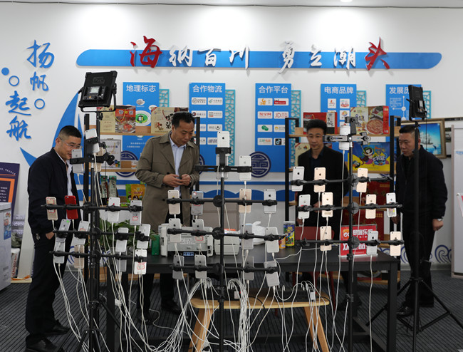 ? ? ? ?調研過程中,副總經(jīng)理許太冬詳細聽取了海前村電商示范村網(wǎng)紅直播運行模式及相關配套設施建設情況,參觀了電商商品展銷廳、網(wǎng)紅直播室、后臺剪切室等電商運營工作室。