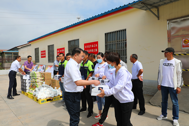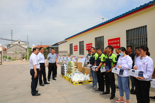 7月28日上午,集團(tuán)公司黨委副書記戴鴻鳴、工會(huì)主席劉承志一行,到青口公司慰問堅(jiān)守在高溫一線的職工, 為職工們送去了綠豆、牛奶等防暑降溫物品,公司部分班子成員陪同慰問。