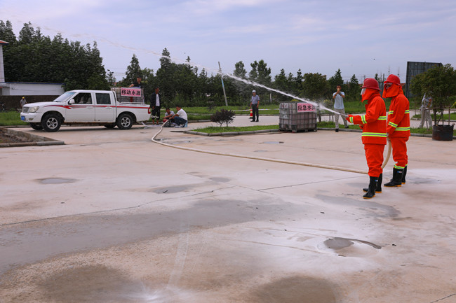 生命無(wú)演練,防患于未然?;顒?dòng)開(kāi)始,安全生產(chǎn)部工作人員一一講述了火災(zāi)種類、滅火器種類及使用方法,大家輪番上前,親手實(shí)踐了滅火器的使用方法。隨后,應(yīng)急分隊(duì)按照預(yù)案實(shí)地演練汽油機(jī)水泵滅火流程。