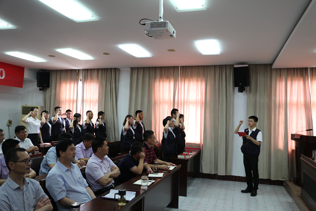 集團(tuán)人力資源部部長劉曉兵同志啟動“藍(lán)馬甲”頒授儀式,為學(xué)員頒授藍(lán)馬甲。 公司人力資源部部長許中業(yè)同志宣讀特訓(xùn)營實施方案,特訓(xùn)營班長仲偉彬帶領(lǐng)所有成員進(jìn)行“藍(lán)馬甲”宣誓,學(xué)員代表黃阿鳳作表態(tài)發(fā)言。