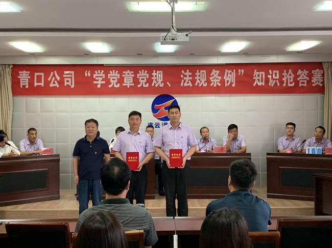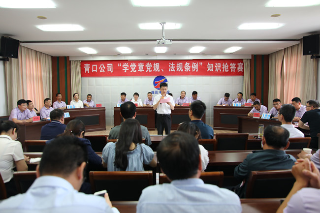 為推動(dòng)黨員干部進(jìn)一步掌握基本標(biāo)準(zhǔn),增強(qiáng)黨的意識(shí)、黨員意識(shí)、紀(jì)律意識(shí),更好地堅(jiān)守初心、踐行使命,6月23日上午,青口公司舉辦“學(xué)黨章黨規(guī)、法規(guī)條例”知識(shí)搶答賽活動(dòng)。來(lái)自公司8個(gè)支部的24名選手參加了比賽。公司黨委班子成員出席了活動(dòng)。機(jī)關(guān)全體管理人員、各單位黨政工負(fù)責(zé)人到場(chǎng)觀看。