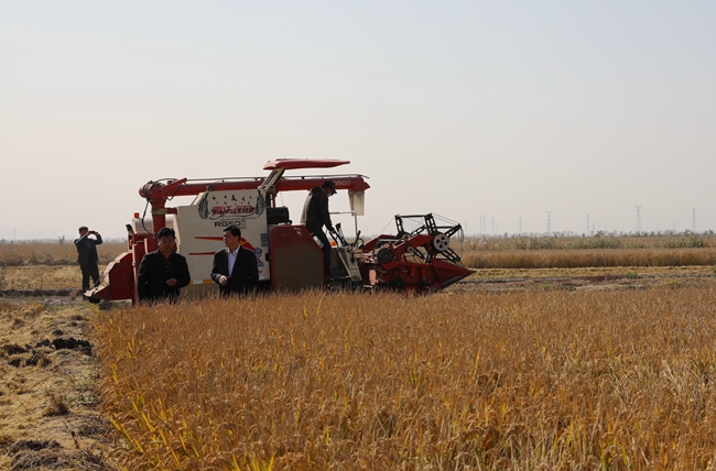 11月4日上午,晴空萬里,在喜慶的鞭炮聲和收割機(jī)的轟鳴聲中,公司萬畝水稻正式開鐮,一年一度的收割任務(wù)全面展開。黨委書記、董事長胡傳法、副總經(jīng)理周緒祥到場指導(dǎo)。