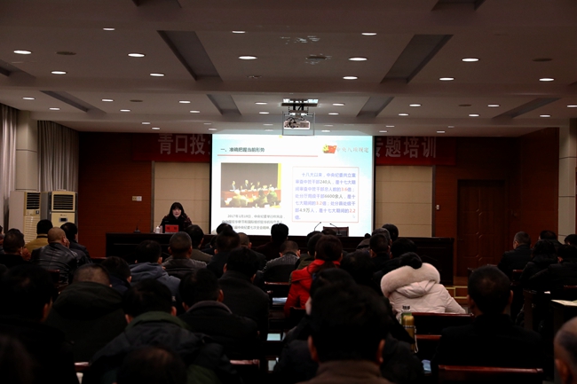 為進(jìn)一步強(qiáng)化作風(fēng)建設(shè),增強(qiáng)黨員干部廉潔從業(yè)意識(shí), 1 月 11 日上午,青口公司邀請(qǐng)市紀(jì)委 黨風(fēng)政風(fēng)監(jiān)督室主任繩艷 作了題為《落實(shí)八項(xiàng)規(guī)定精神 從嚴(yán)從實(shí)改進(jìn)作風(fēng)》的專題報(bào)告,集團(tuán)紀(jì)委書記汪群、公司領(lǐng)導(dǎo)班子成員和全體在崗黨員參加此次講座,講座由黨委書記、董事長(zhǎng)胡傳法主持。