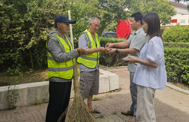 烈日炎炎,有這樣一群人在驕陽下依然堅守在自己的工作崗位上,他們就是黃沙坨美容師——環(huán)衛(wèi)工人。為了給高溫下辛苦工作的環(huán)衛(wèi)工人送去一份清涼,讓他們能夠以良好的狀態(tài)投入到保潔工作中,近日,生產(chǎn)生活服務中心分會將熬制好的綠豆湯分裝在碗內,送給正在作業(yè)的環(huán)衛(wèi)工人。同時,為他們科普防暑降溫知識,叮囑他們提高安全健康意識,合理調整工作時間。