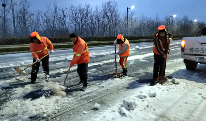 2月19日至21日,受持續(xù)大風(fēng)寒潮天氣影響,給徐圩新區(qū)、板橋工業(yè)園區(qū)各條道路蓋上較厚冰層。為全力以赴掃雪除冰、排除隱患,悅升公司堅(jiān)持“人動(dòng)機(jī)動(dòng)、雪停雪凈”原則,落實(shí)好“三包三聯(lián)”工作機(jī)制,實(shí)現(xiàn)道路通暢、安全出行,切實(shí)保障好廣大群眾正常生產(chǎn)生活秩序和生命財(cái)產(chǎn)安全。