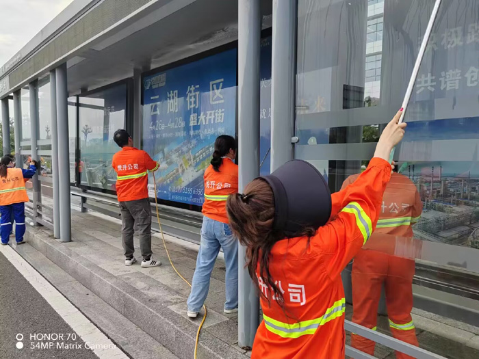? ? ? ?集中勞動(dòng)“有力彰顯”。學(xué)習(xí)活動(dòng)結(jié)束后,保潔、機(jī)關(guān)黨支部20多名黨員匯集新區(qū)核心區(qū)域徐圩大道,南京路等路段,開(kāi)展黨員義務(wù)勞動(dòng)。活動(dòng)現(xiàn)場(chǎng),大家分工明確,相互配合,無(wú)懼高溫天氣,上下?lián)]動(dòng)雙臂,沖洗站臺(tái)玻璃和清理廣告標(biāo)語(yǔ),經(jīng)過(guò)兩個(gè)多小時(shí)持續(xù)奮戰(zhàn),徒手清洗站臺(tái)20多個(gè),座椅40多個(gè)。(楊波)